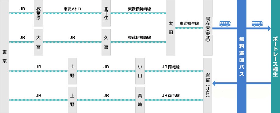 | 阿左美駅 | ボートレース桐生 北ウィングタクシー乗場付近 |