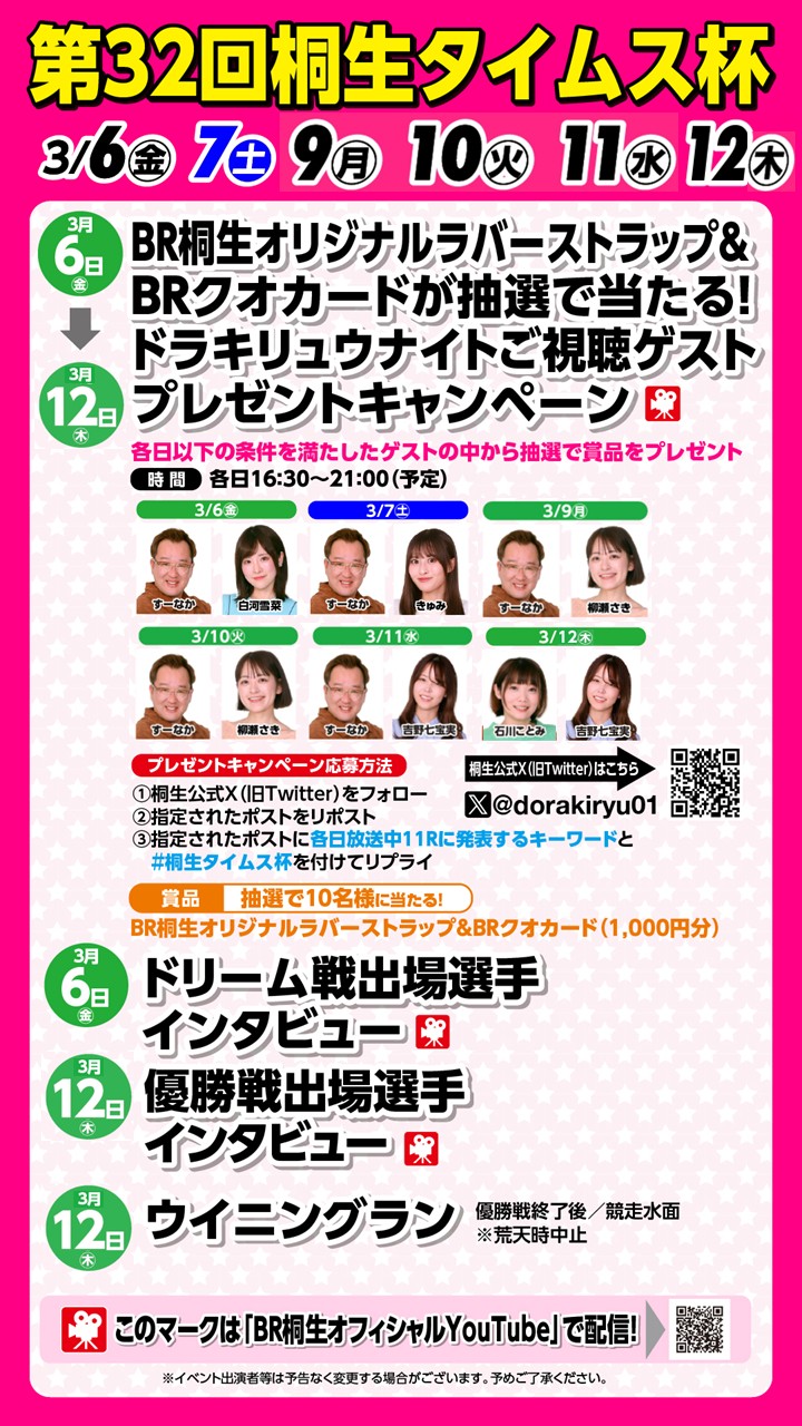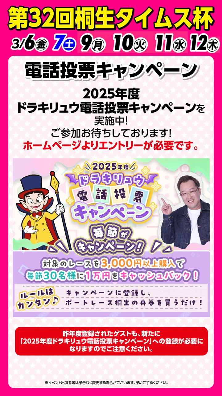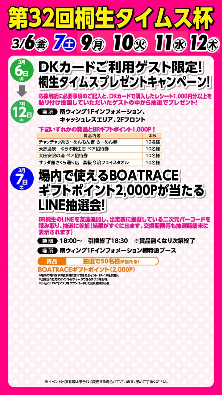 第32回桐生タイムス杯(3/6~12) イベント・ゲストサービスについて