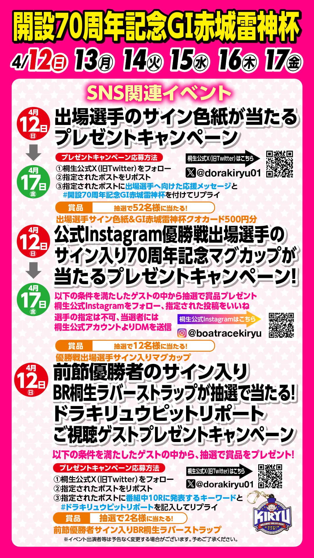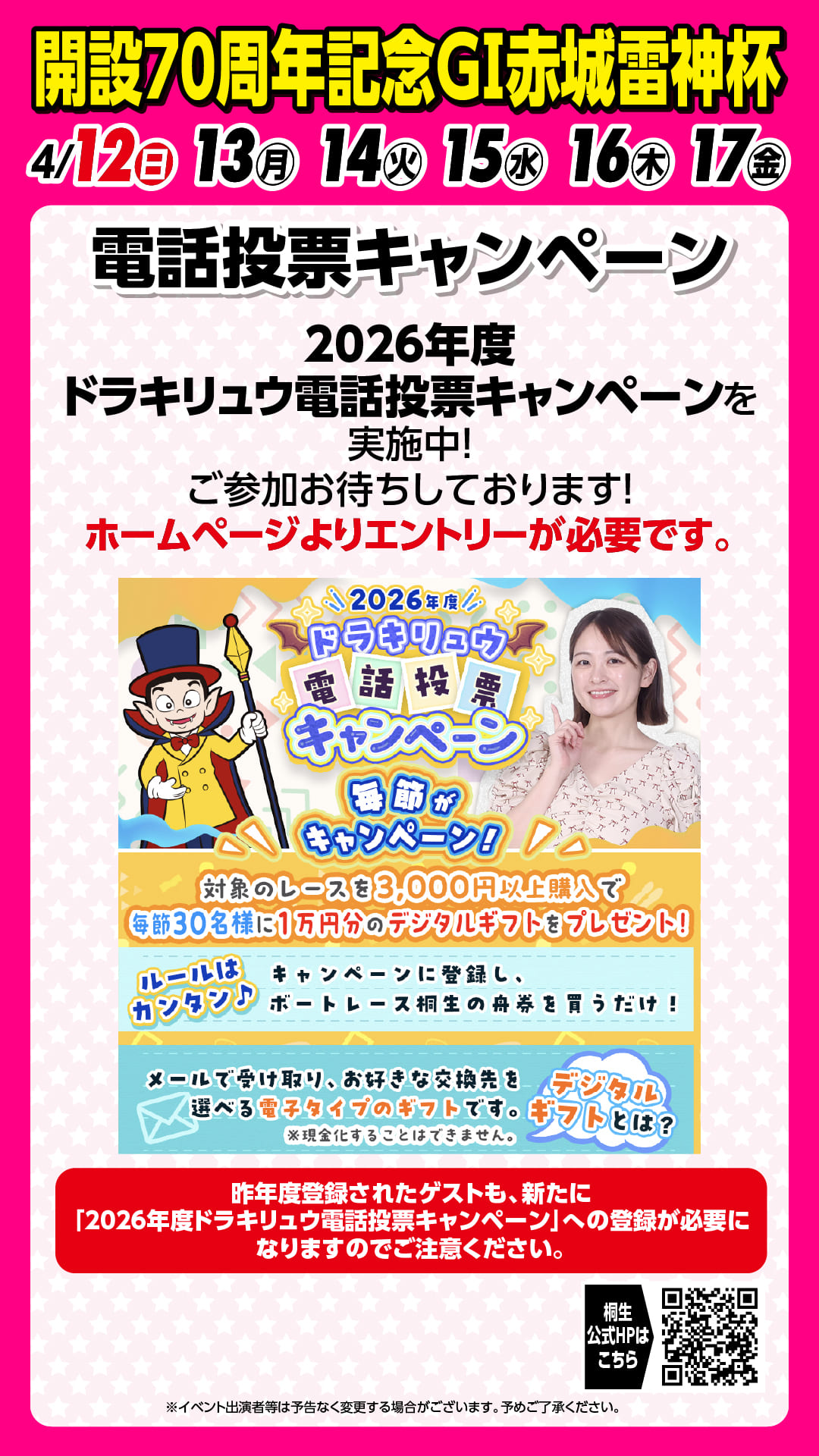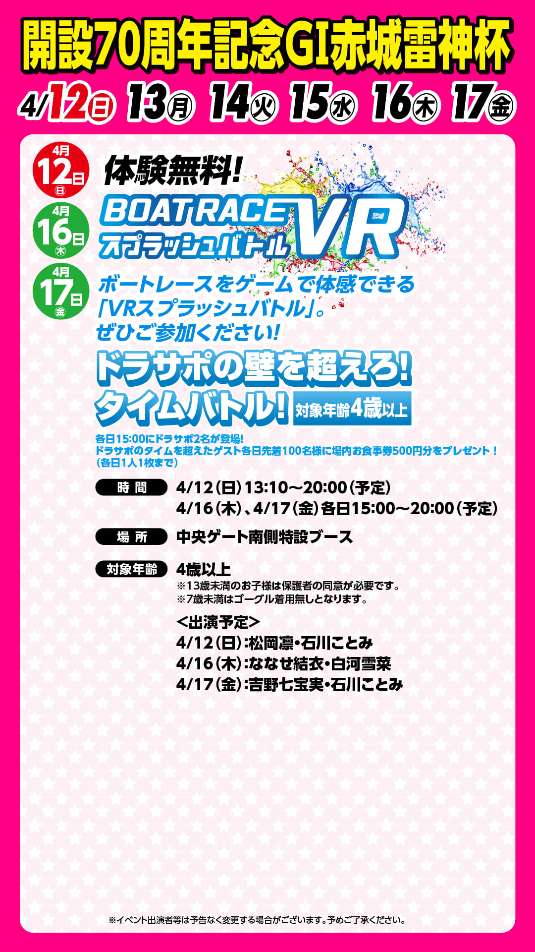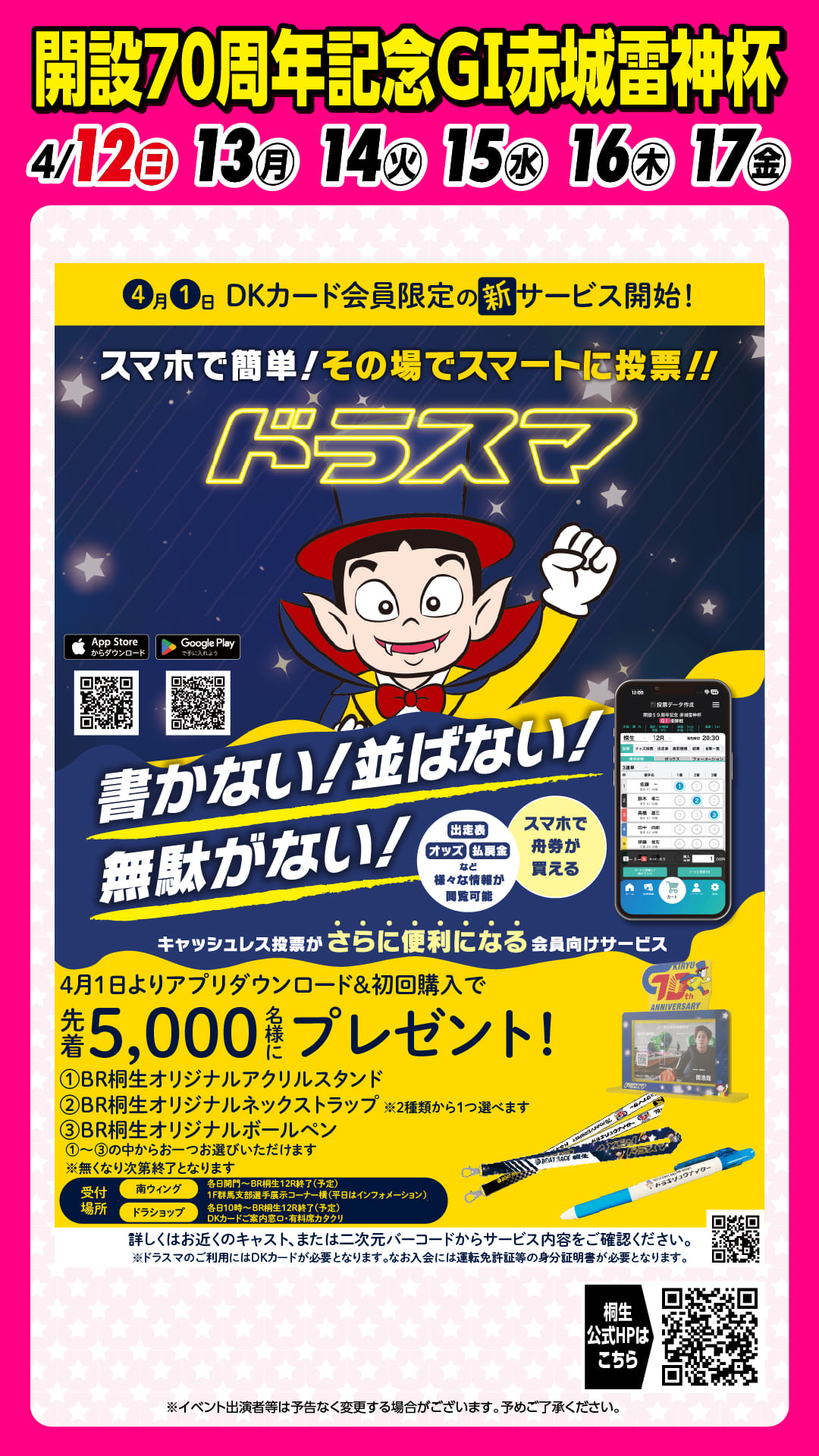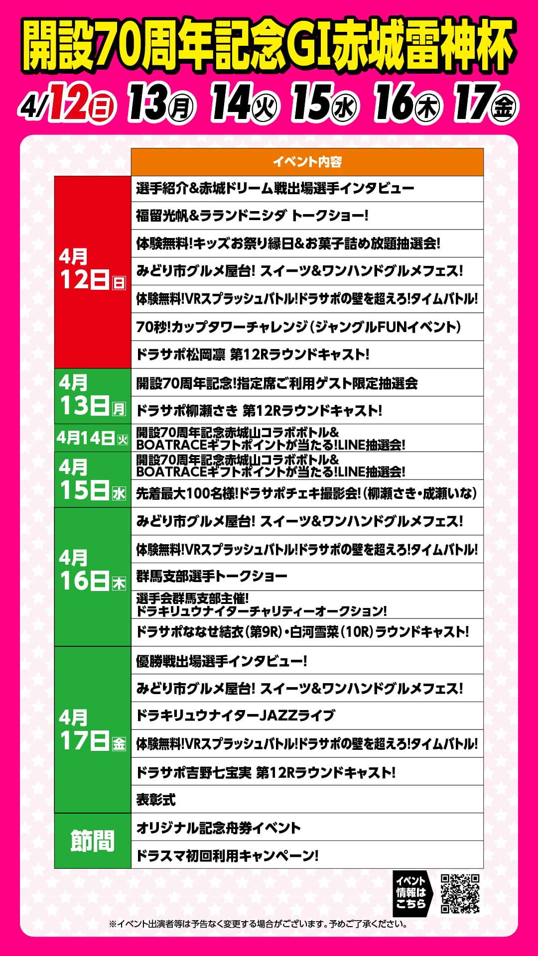 開設70周年記念 G1赤城雷神杯(4/12~17) イベント・ゲストサービスについて