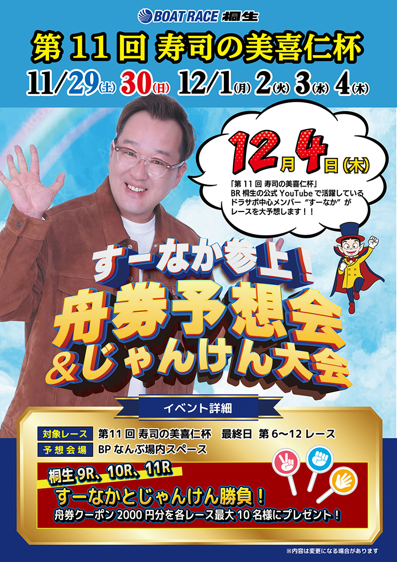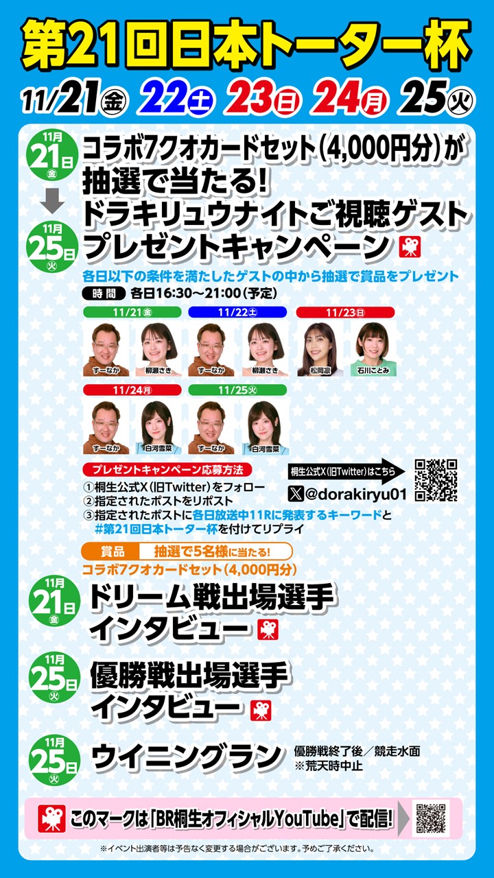 ボートレース桐生では、強風や突風による横断幕の亀裂・破損等、また競走の安全確保から、下記の間横断幕の掲出を休止致します。