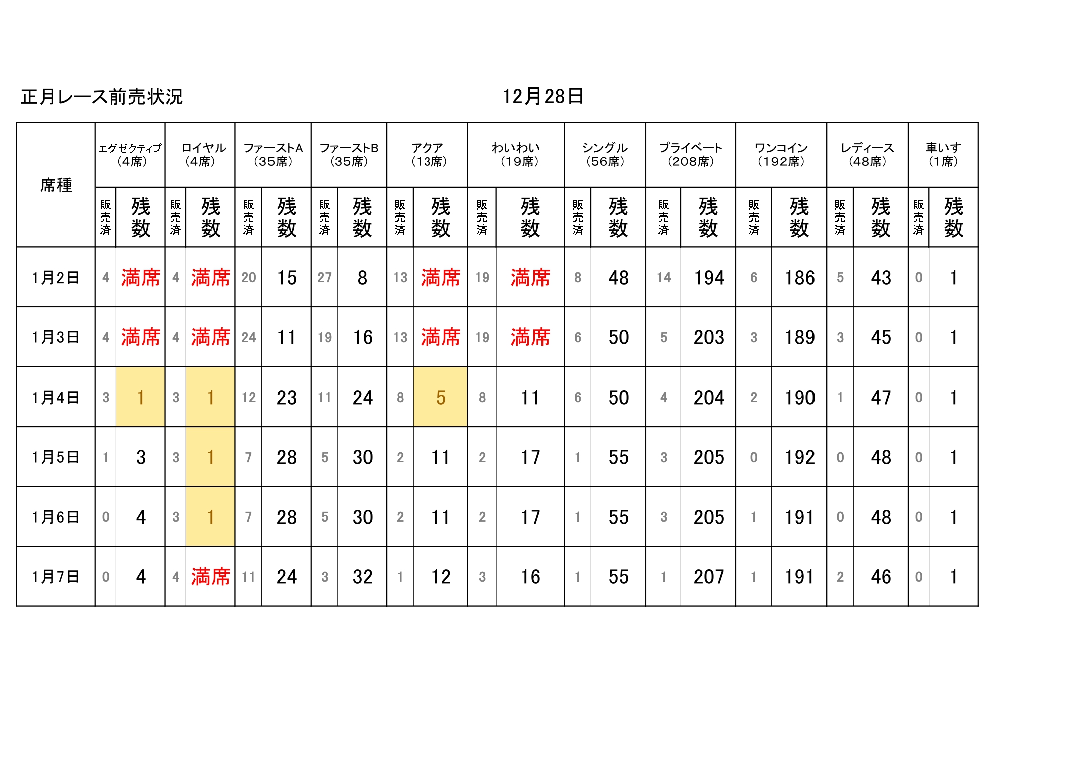 ※当日の南ゲートでの指定席発売開始時間は、通常13時50分のところ1月2日~7日は13時20分となっております。