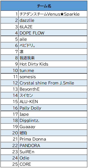 第4回ドラキリュウダンスコンテスト 出場チームを発表いたします。 ●キッズ部門 11/22(土) ●一般部門 11/29(土) ※出場チームには11/6(木)にダンスコンテスト事務局より、音源の提出や注意事項についての詳細をメールでお送りいたします。 ※発表順が当日の出演順番となります。 ※お問い合わせは、ダンスコンテスト事務局まで。 03-5654-3727 受付時間:平日9:00~17:00(土日祝は対応しておりません)