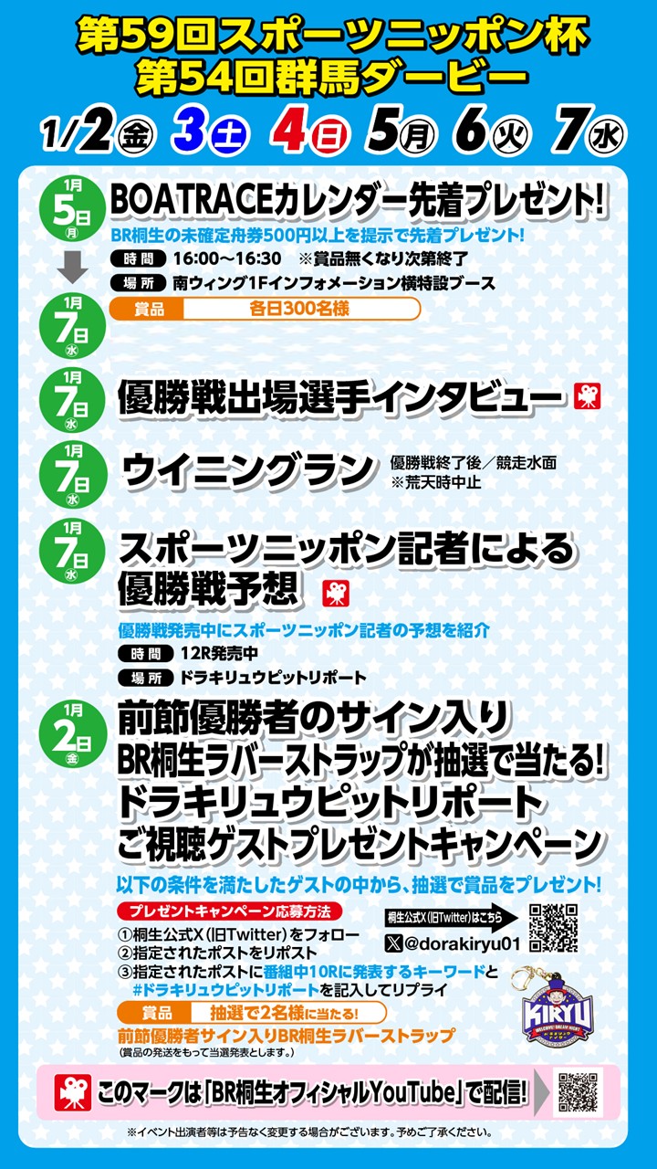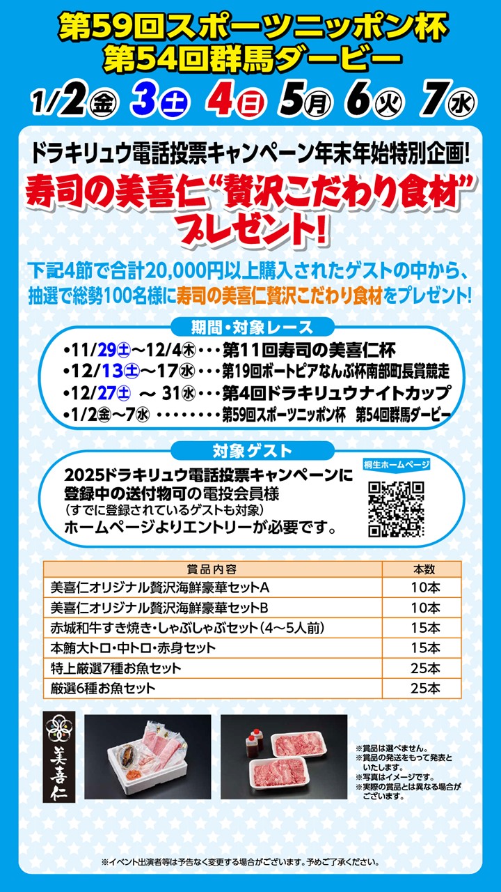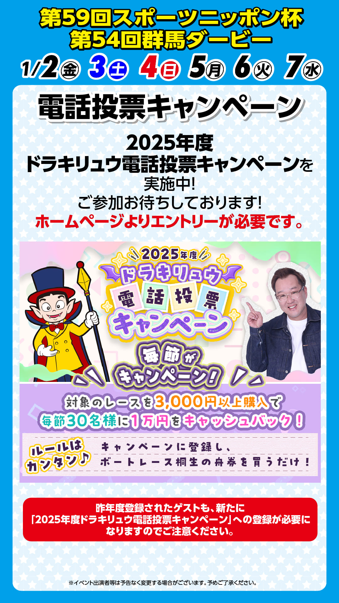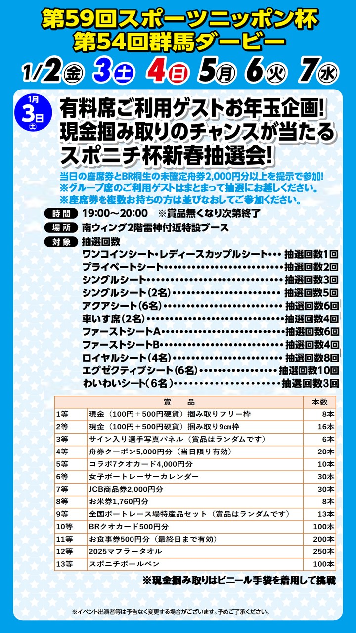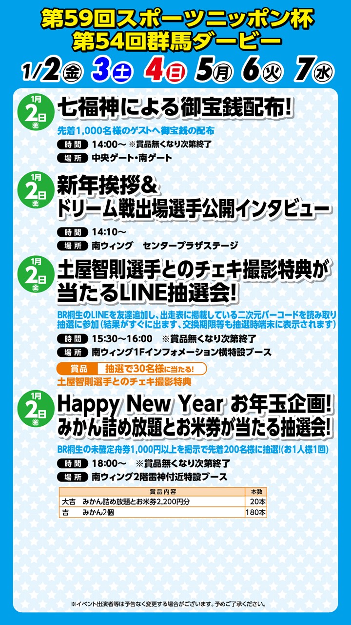 第59回スポーツニッポン杯 第54回群馬ダービー(1/2~1/7) イベント・ゲストサービスについて