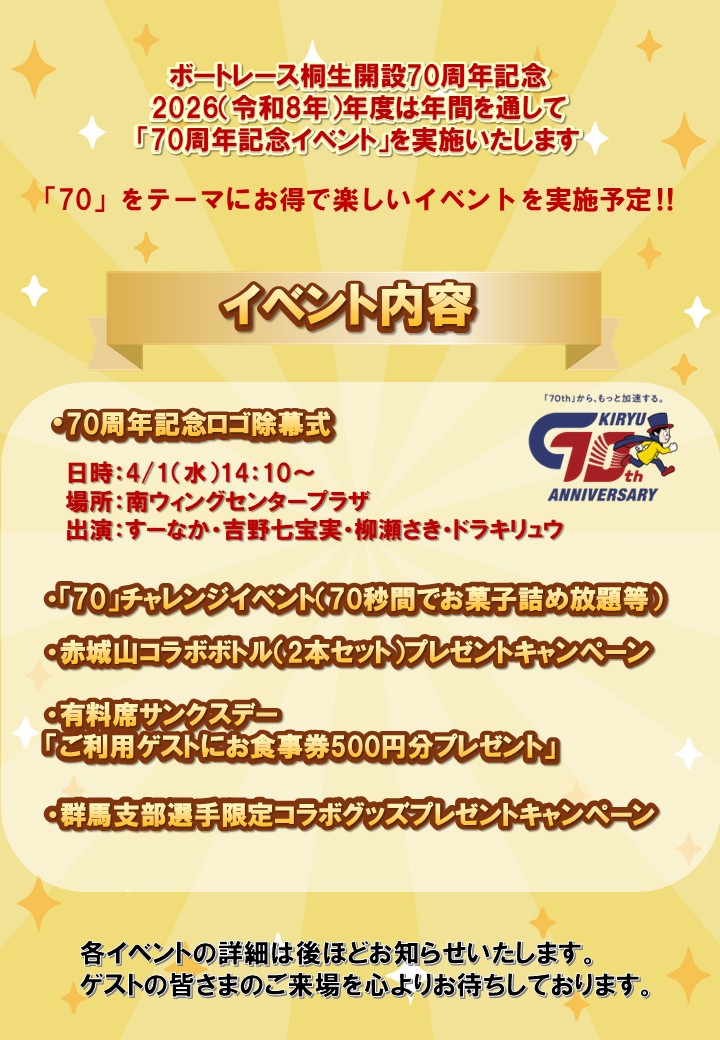 ボートレース桐生開設70周年記念イベント