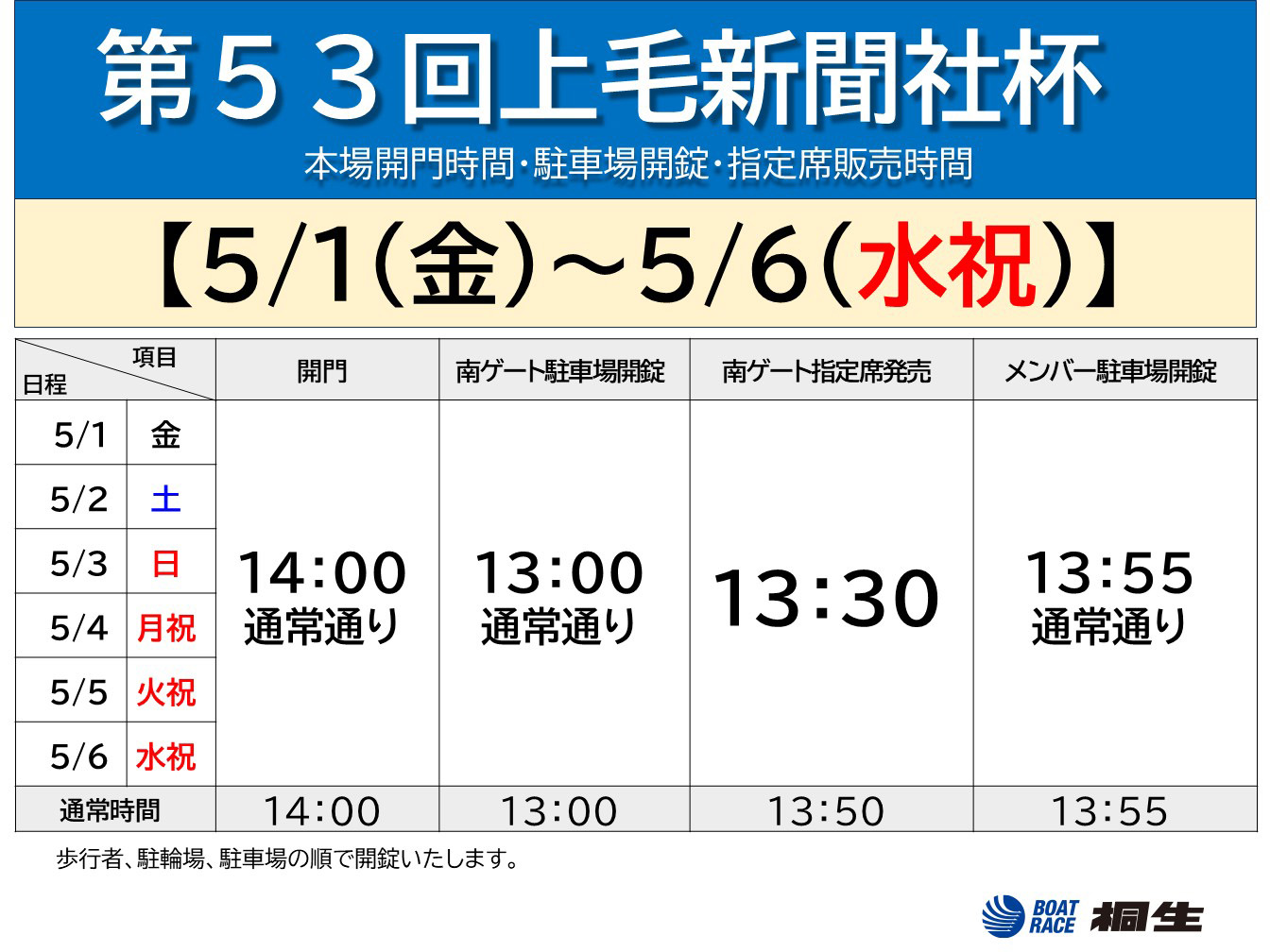 第53回上毛新聞社杯 本場開門・駐車場開錠・指定席販売時間について