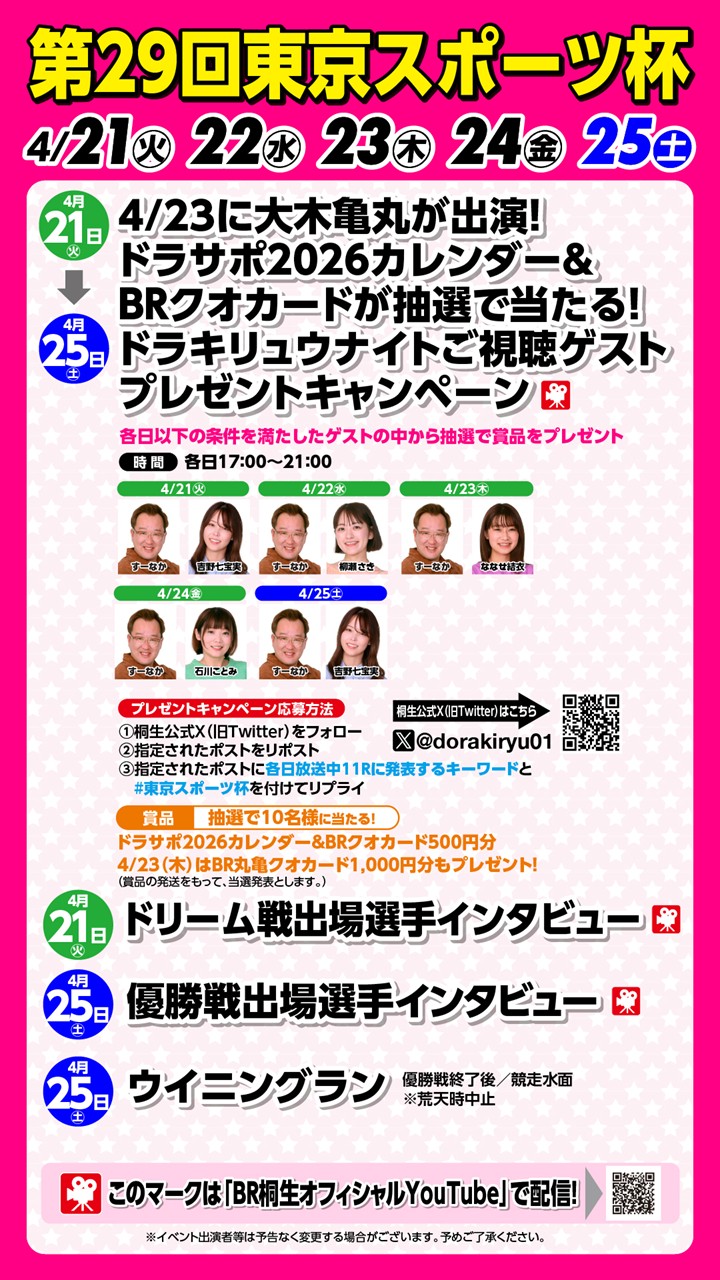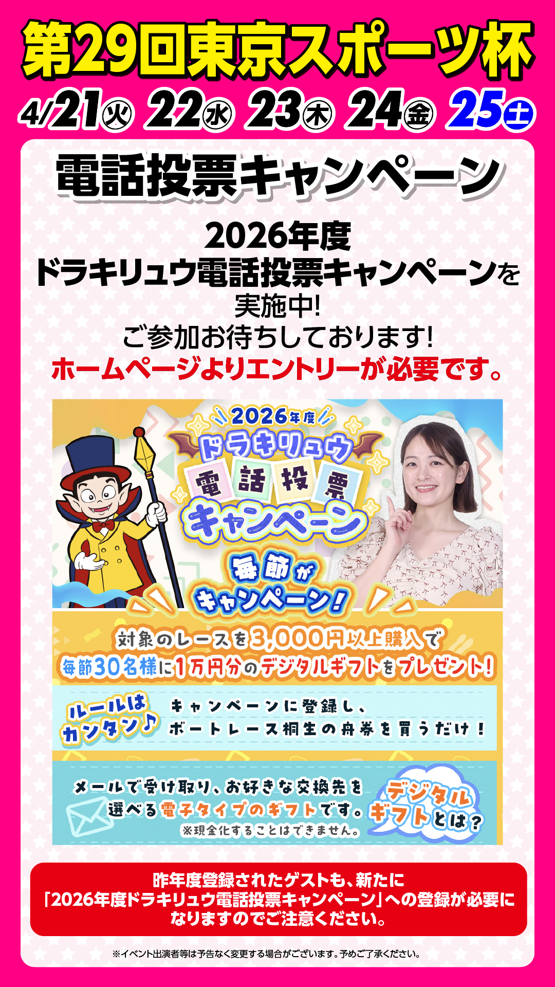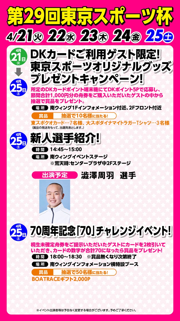 第29回東京スポーツ杯(4/21~25) イベント・ゲストサービスについて