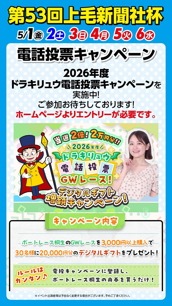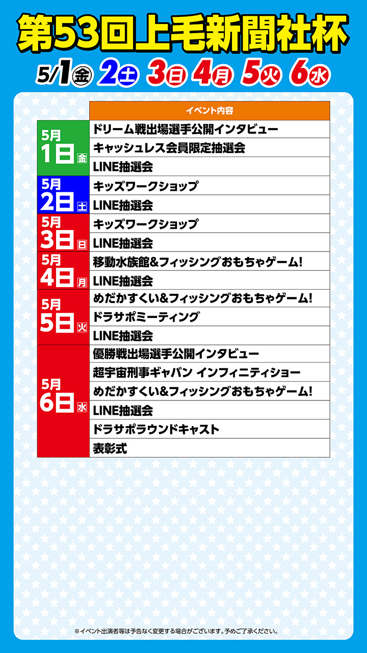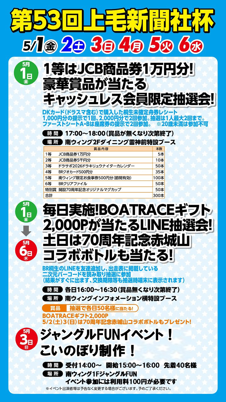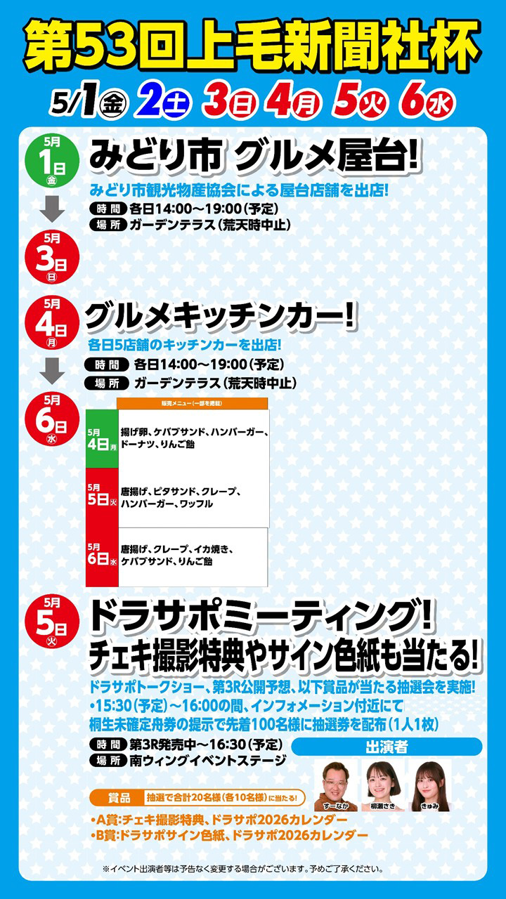 第53回上毛新聞社杯(5/1~6) イベント・ゲストサービスについて