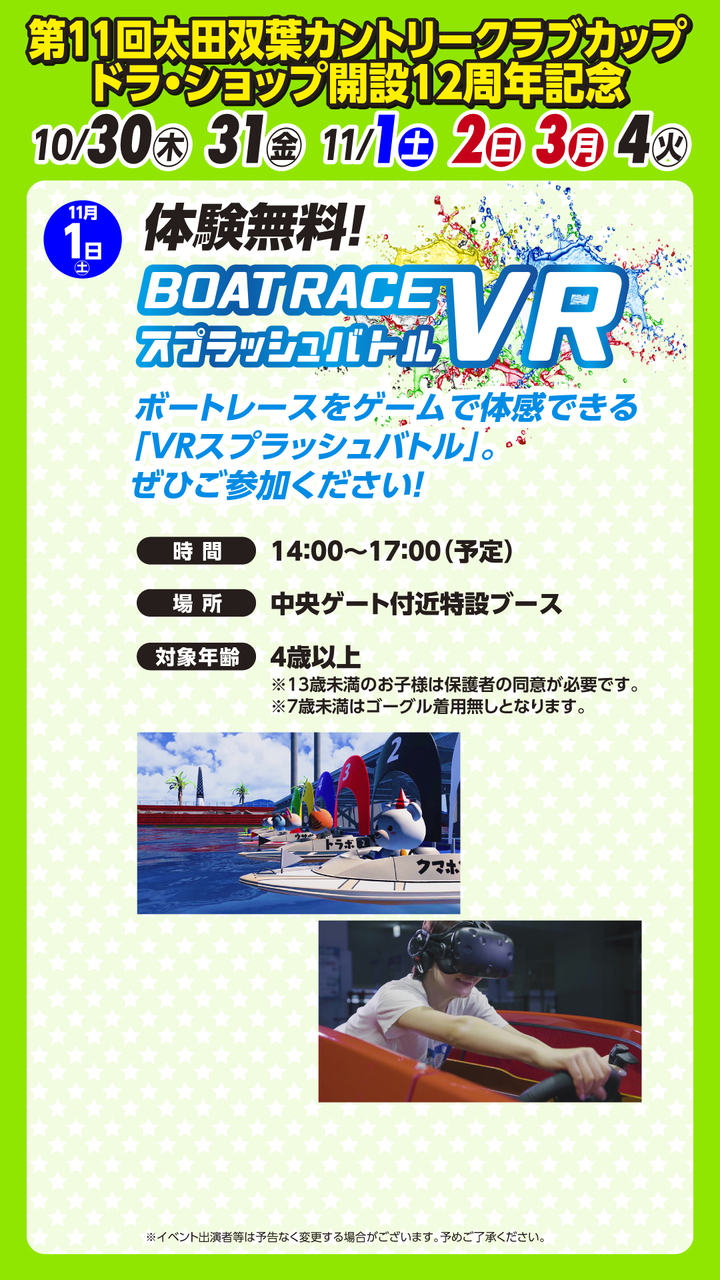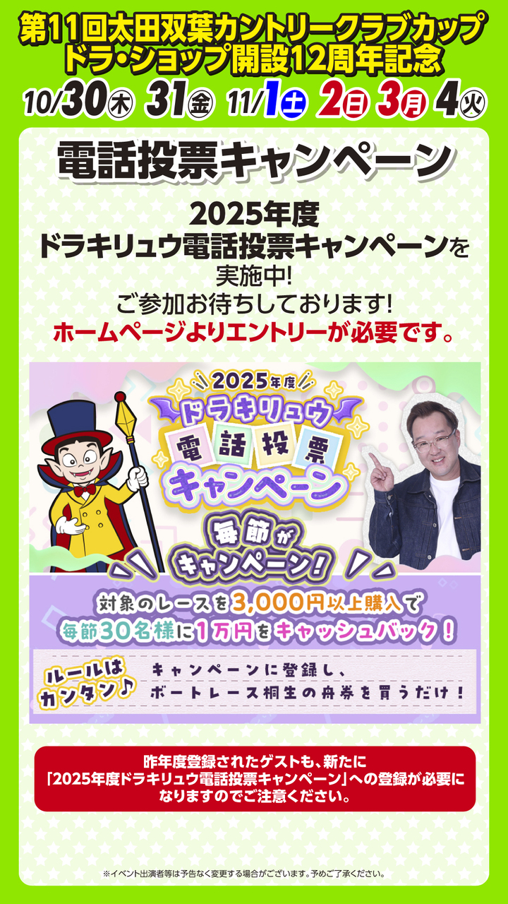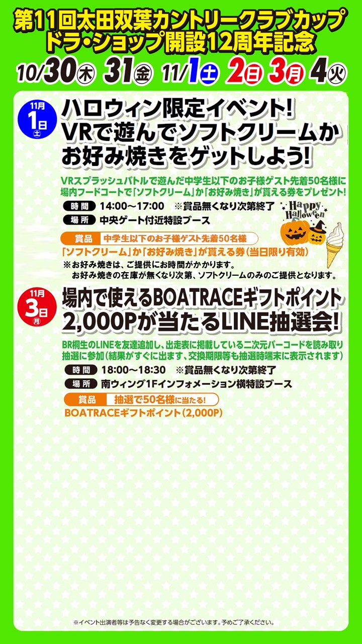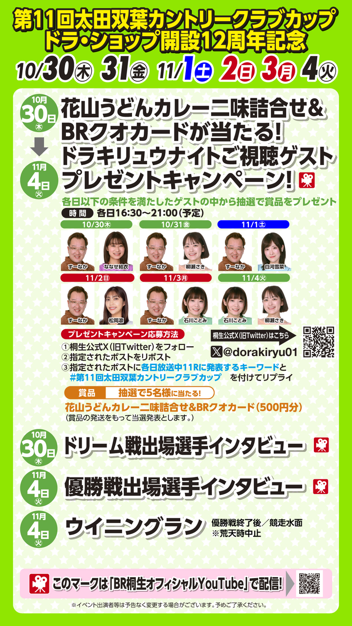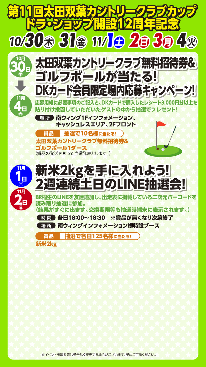 第11回太田双葉カントリークラブカップ ドラ・ショップ開設12周年記念(10/30~11/4) イベント・ゲストサービスについて