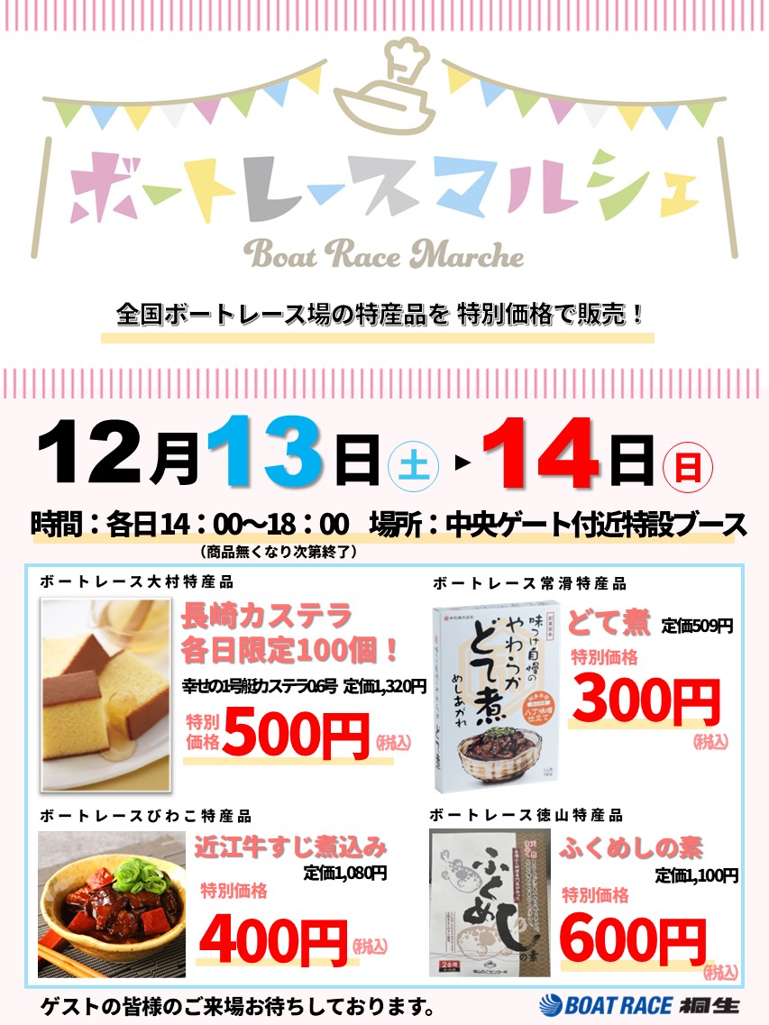 ボートレースマルシェ(12/13(土)・14(日)) 全国ボートレース場の特産品を特別価格で販売!