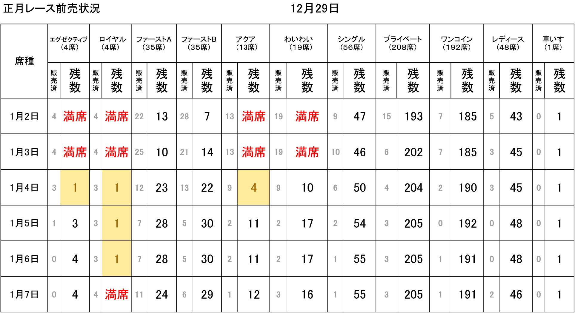 第59回スポーツニッポン杯第54回群馬ダービー 有料席前売状況および当日の有料席発売時間について