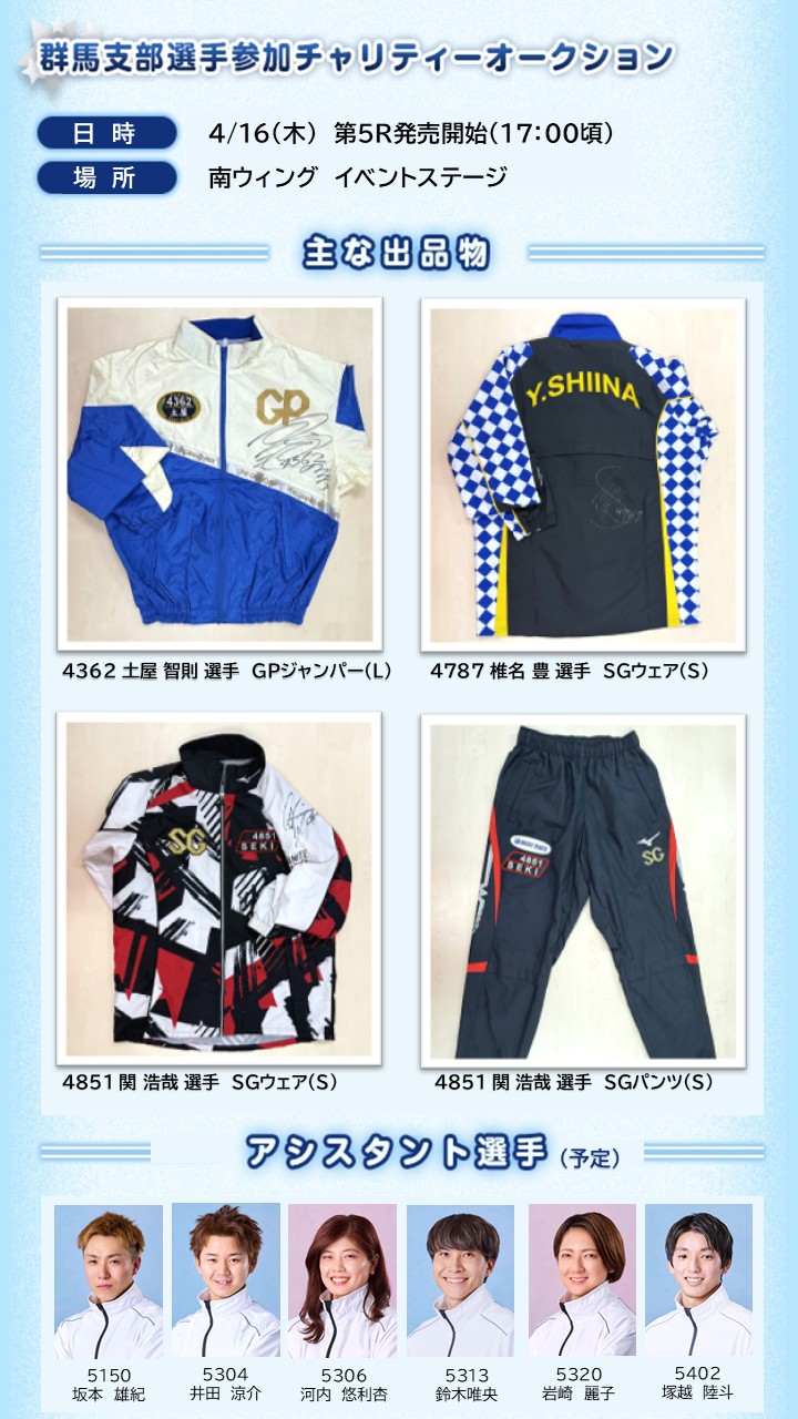 4月16日(木)選手会群馬支部主催!ドラキリュウナイターチャリティーオークション!(出品予定リスト)