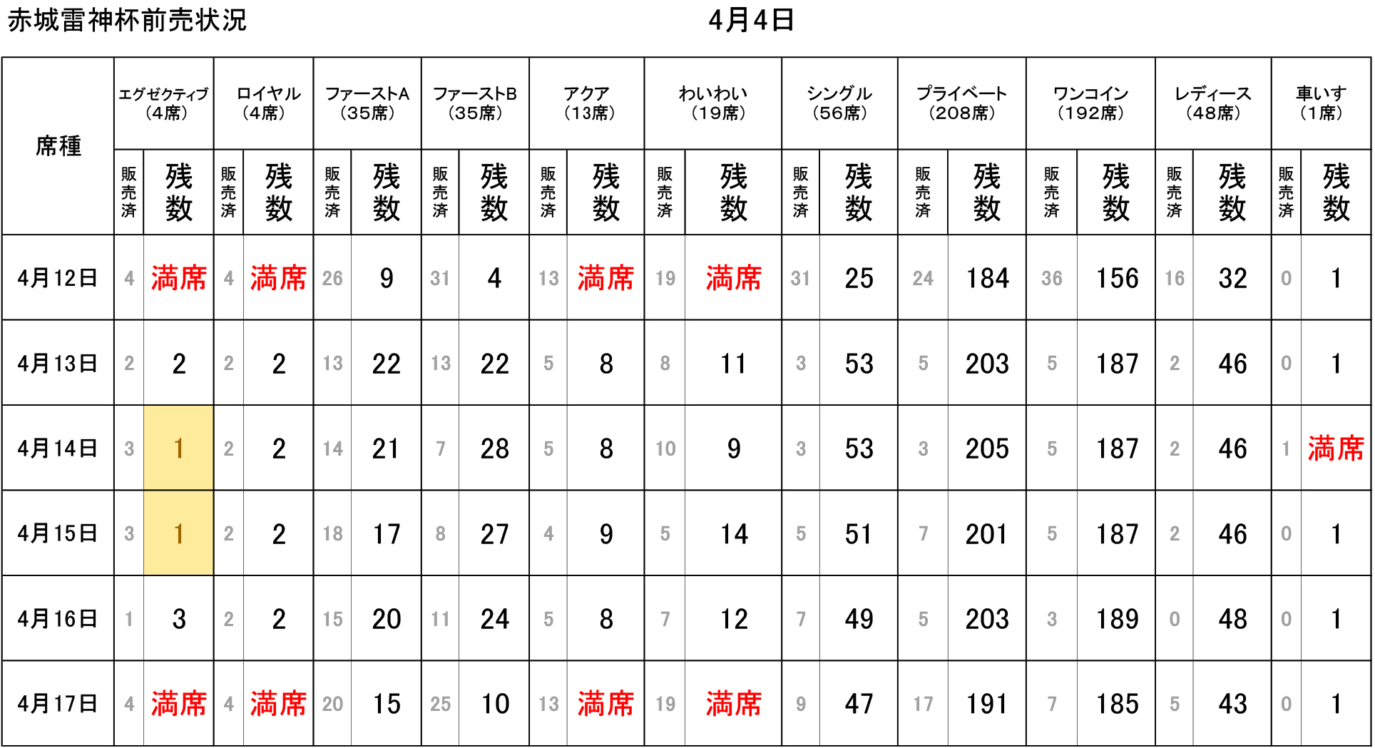 ※当日の南ゲートでの指定席発売開始時間は、通常13時50分のところ4月12日は12時30分となっております。