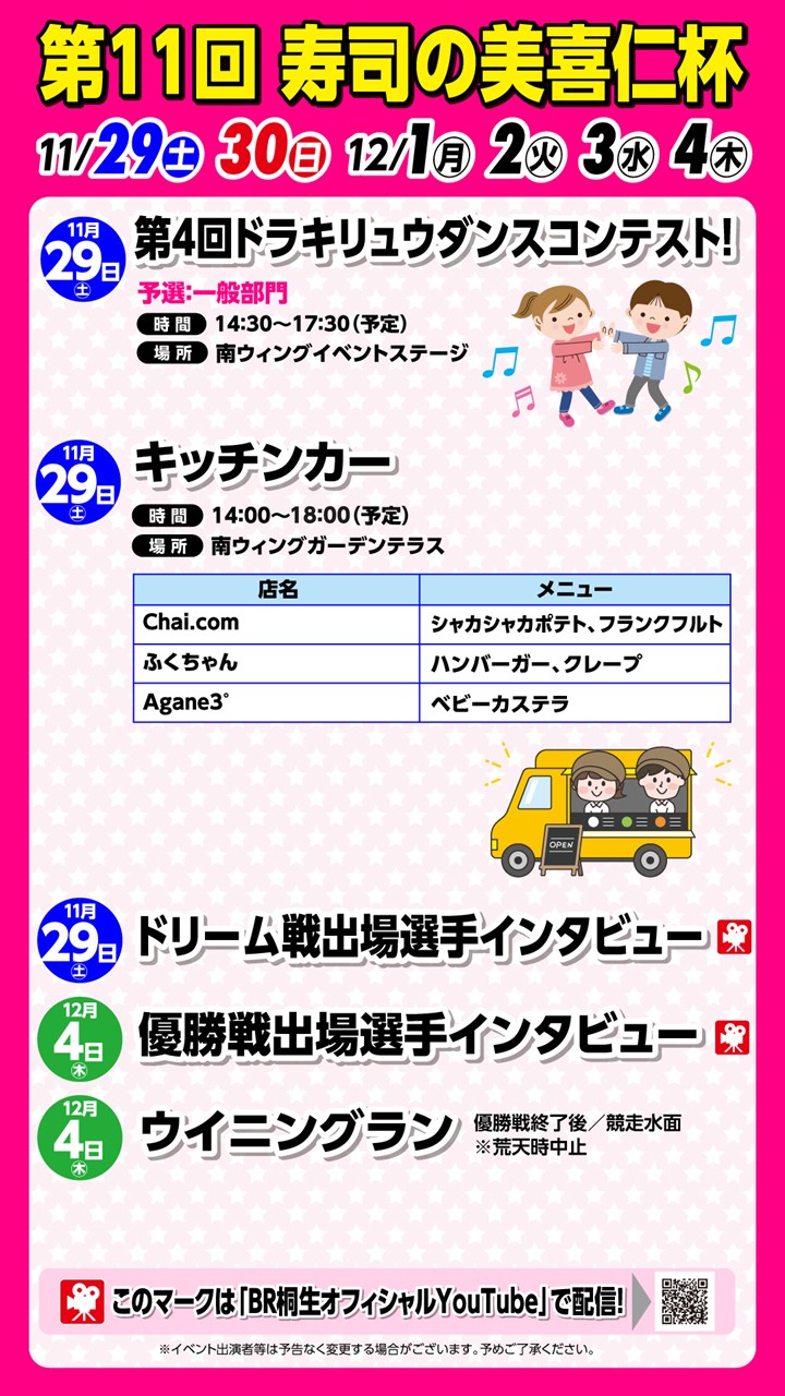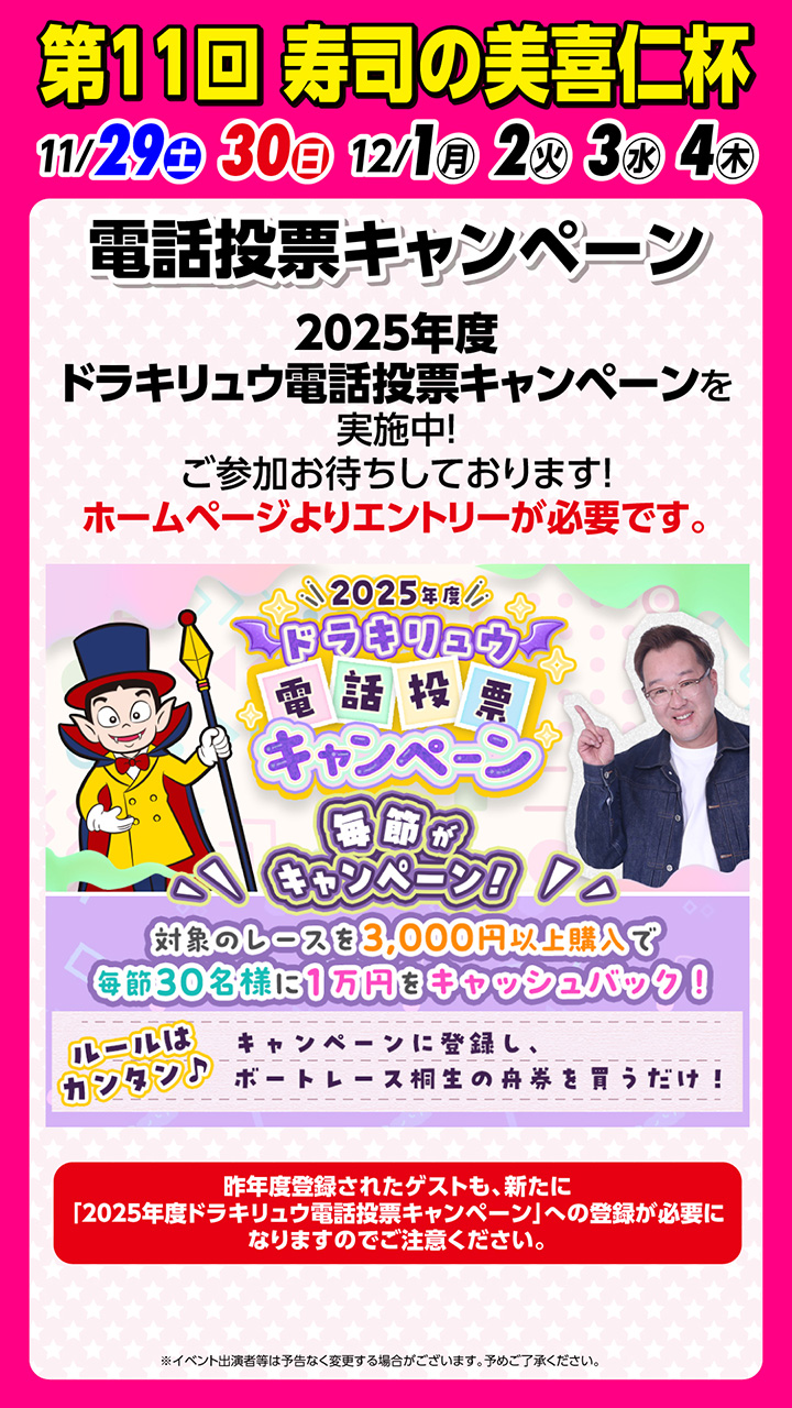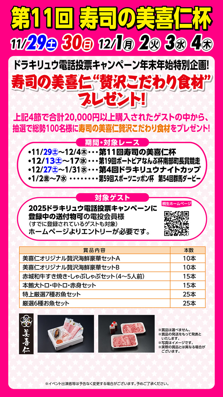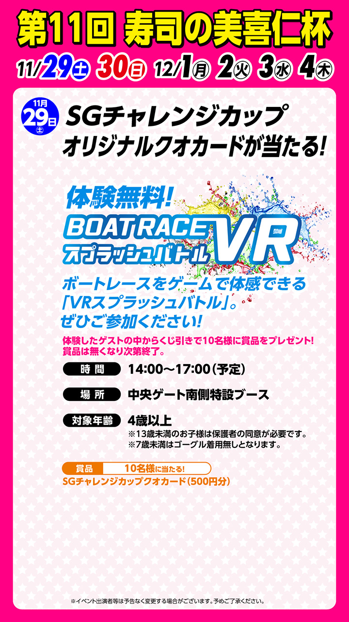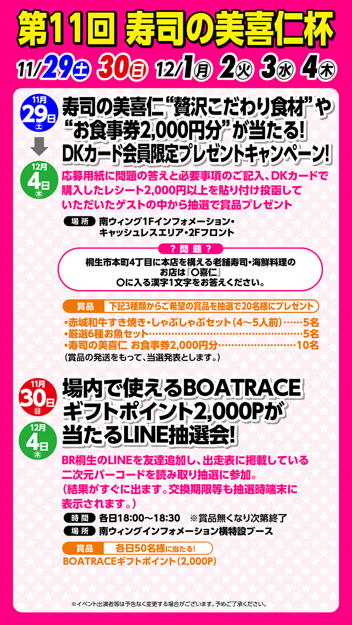 第11回寿司の美喜仁杯(11/29~12/4) イベント・ゲストサービスについて