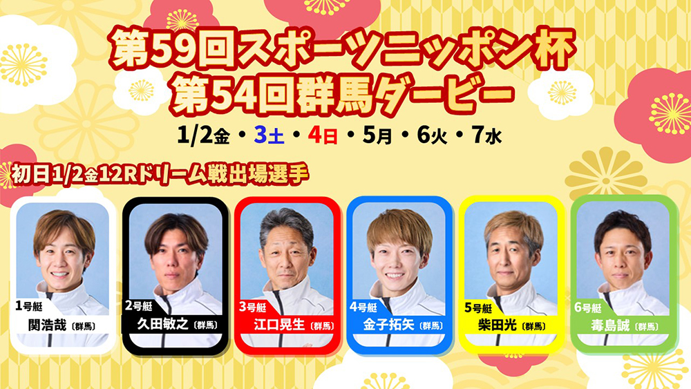 第59回スポーツニッポン杯 第54回群馬ダービー(1/2~7) ドリーム戦出場選手発表!