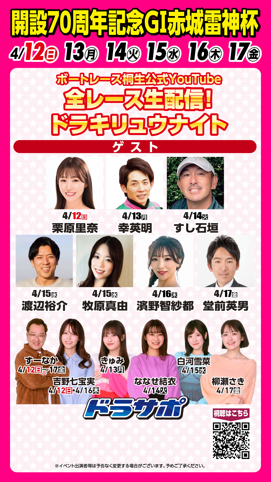 開設70周年記念 G1赤城雷神杯(4/12~17) イベント・ゲストサービスについて