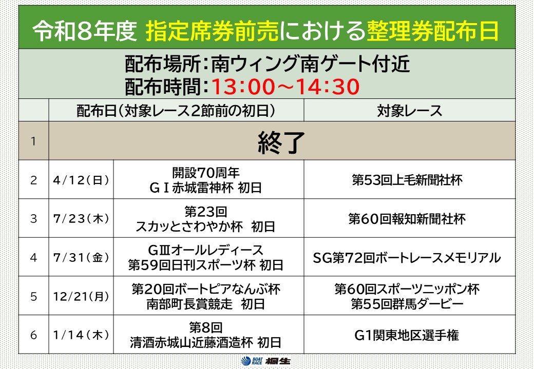 R8年度 整理券配布スケジュールについて