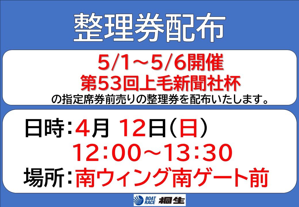 第53回上毛新聞社杯 指定席券前売りの整理券配布について